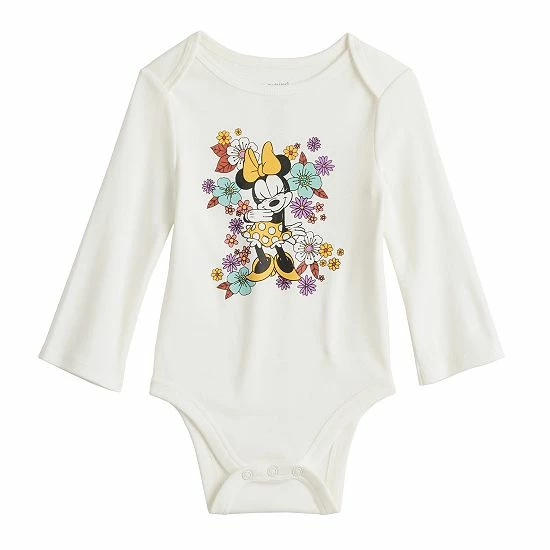 Your little lady will look just too cute in this baby girls’ floral Minnie Mouse graphic bodysuit from Jumping Beans. ©Disney