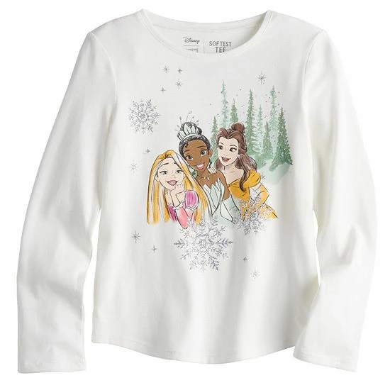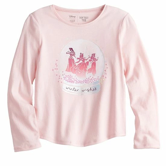 She’ll love the Disney style of this girls’ Jumping Beans shirttail tee, featuring a princesses print. ©Disney