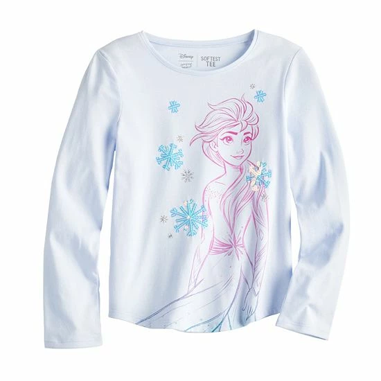 She’ll love the Disney style of this girls’ Jumping Beans shirttail tee, featuring an Elsa graphic. ©Disney