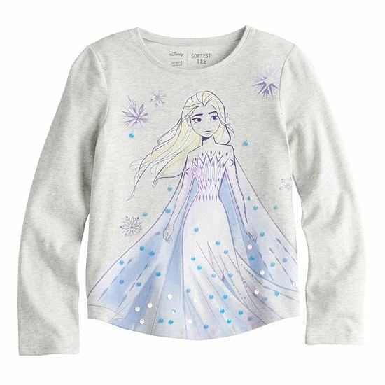 She’ll love the Disney style of this girls’ Jumping Beans shirttail tee, featuring Elsa from Frozen. ©Disney