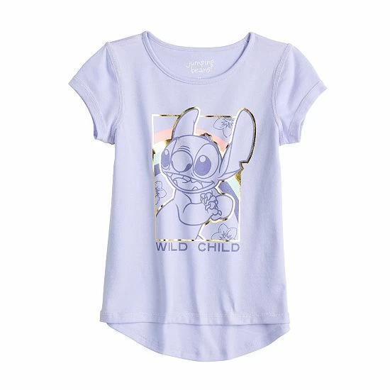 With its fun metallic graphic and trendy high-low hem, this toddler girls’ Lilo and Stitch tee from Jumping Beans is sure to have her looking oh-so-cute. ©Disney