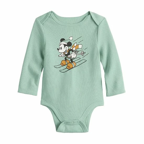 Featuring Disney’s Mickey Mouse, he’ll love this boys’ Jumping Beans thermal bodysuit. ©Disney