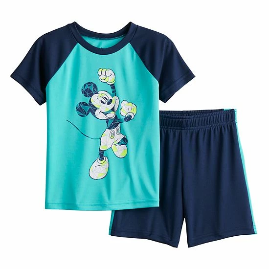 He’ll be perfectly coordinated in Disney’s Mickey Mouse fashion with this boys’ raglan active tee and matching shorts set by Jumping Beans. © Disney