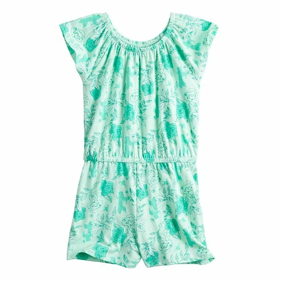 She’ll love her look in this girls’ Princess Jasmine allover print flutter sleeve romper from Jumping Beans. ©Disney