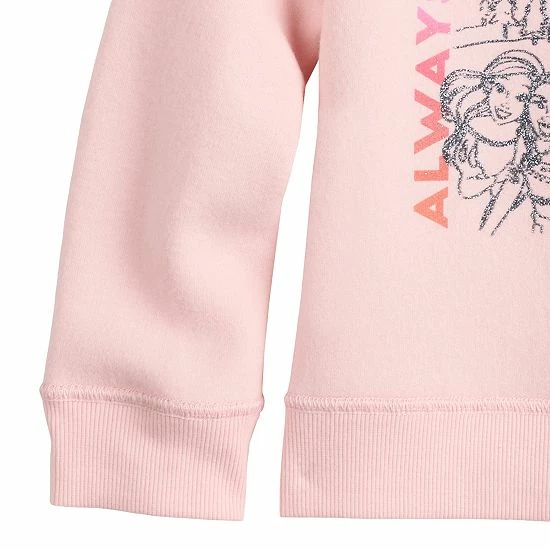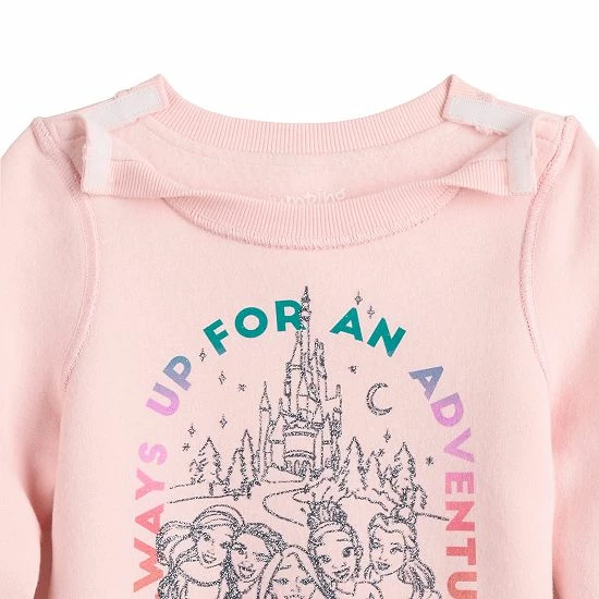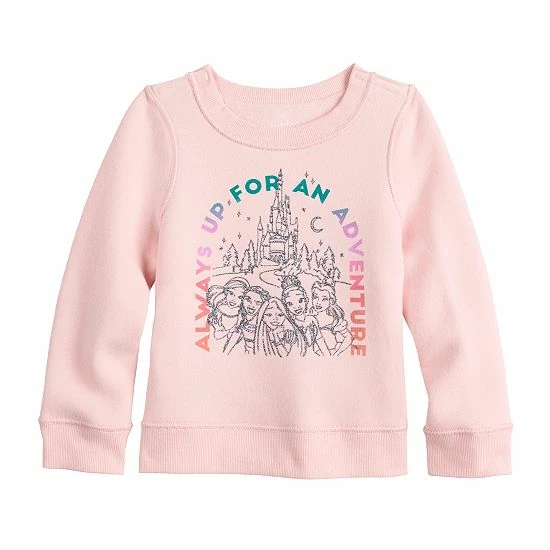 She’ll feel like royalty in this sparkle-accented girls’ Disney Princesses fleece graphic sweatshirt from Jumping Beans. ©Disney