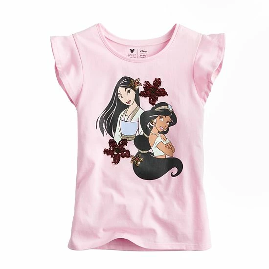 She’ll love her look in this girls’ flutter sleeve Disney Princesses graphic tee from Jumping Beans. ©Disney