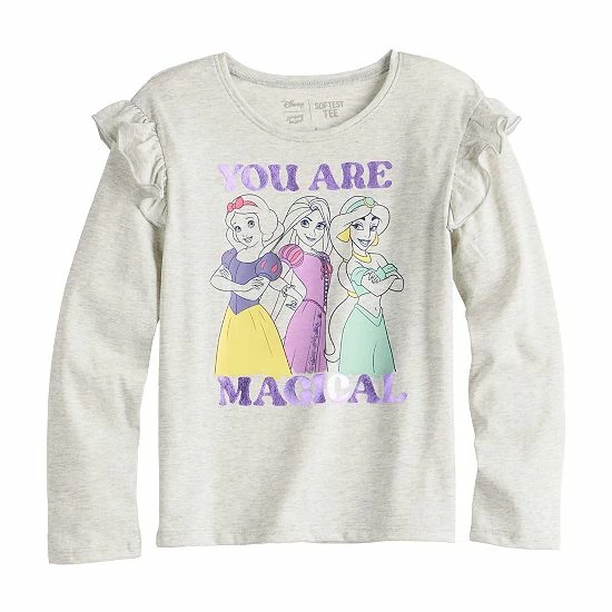 She’ll feel like royalty in this girls’ Disney Princesses ruffle shoulder long sleeve tee from Jumping Beans. ©Disney