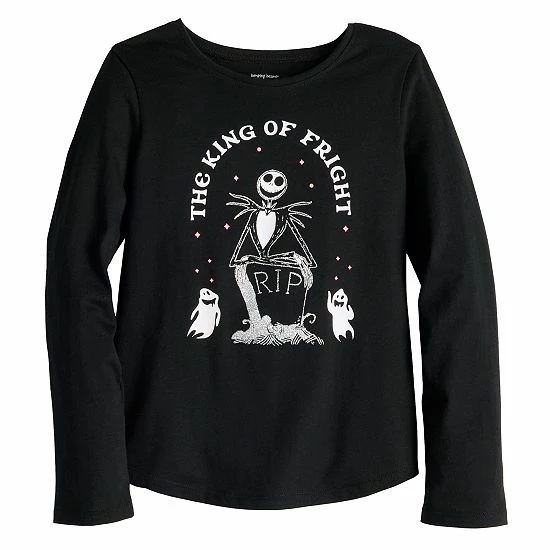 She’ll be ready for spooky season in this girls’ The Nightmare Before Christmas Jack Skellington long sleeve graphic tee from Jumping Beans. ©Disney