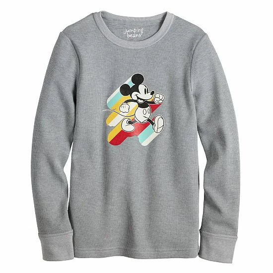 He’ll be ready to take on the cooler weather in this toddler boys’ Mickey Mouse thermal graphic tee from Jumping Beans. ©Disney
