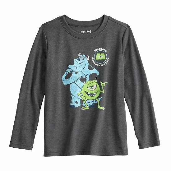 Your little monster will love wearing this toddler boys’ Monsters Inc. long sleeve graphic tee from Jumping Beans. ©Disney / Pixar