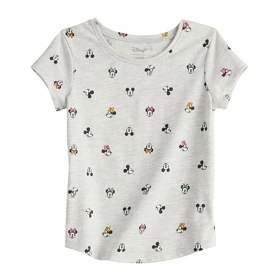 She’ll look oh-so-cute in this toddler girls’ Mickey and Minnie Mouse print shirttail tee from Jumping Beans. ©Disney