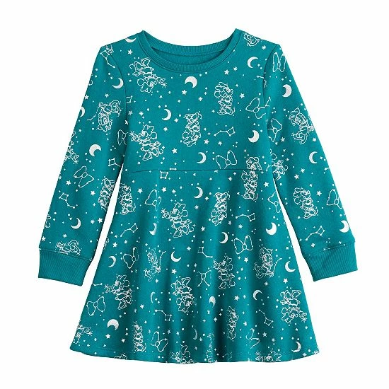 She’ll be comfy, cozy, and oh-so-cute in this toddler girls’ Minnie Mouse celestial print fleece dress from Jumping Beans. ©Disney